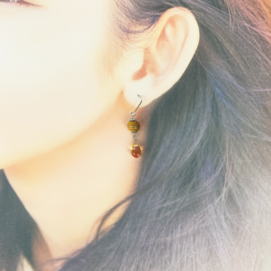 屋久杉ビーズを使用し森に滴る雫をイメージして製作しました。