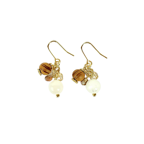 誕生石とチェコビーズのピアス・イヤリング【6月・ムーンストーン】ゴールド