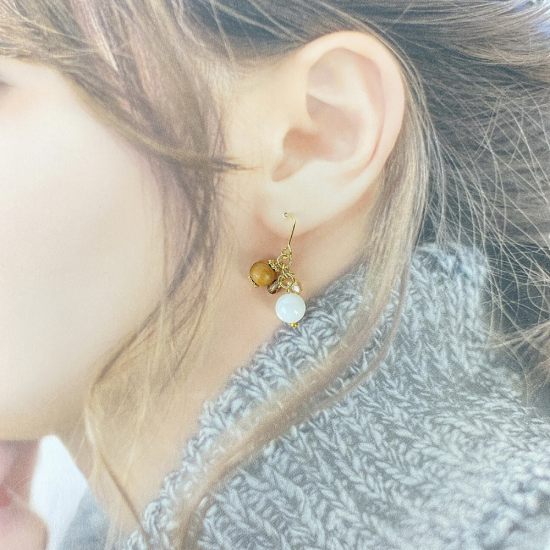 誕生石とチェコビーズのピアス・イヤリング【6月・ムーンストーン】ゴールドの通販