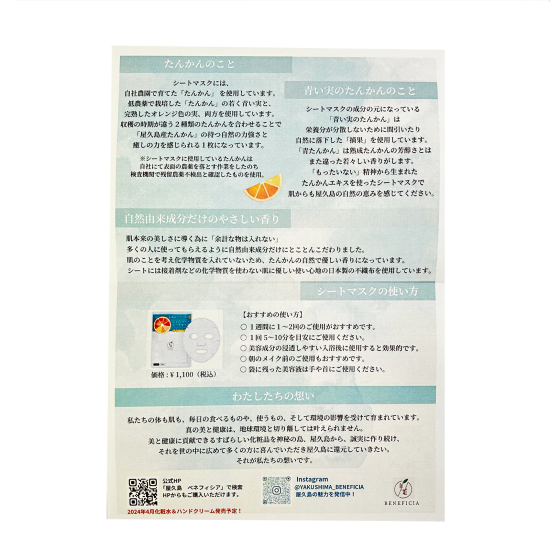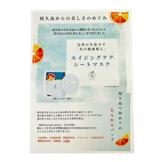 屋久島の生命力あふれる環境で育ったたんかん、自然を育む美しい水で作ったシートマスク。